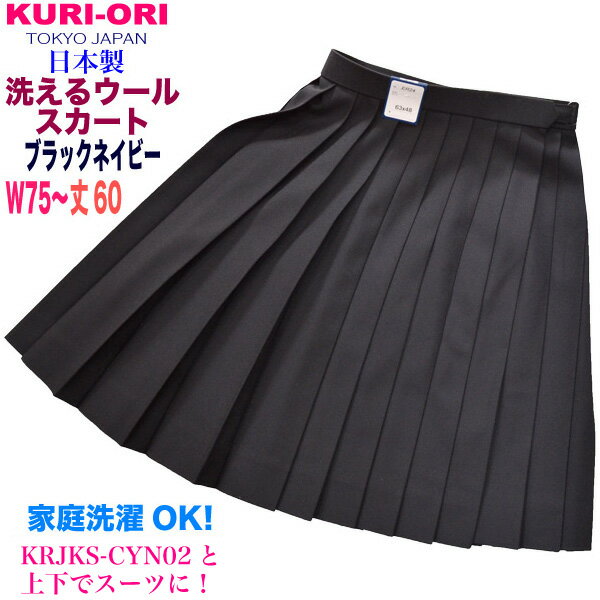 KURI-ORI★クリオリウエスト75・80・85cm スカート丈60cm ロング丈 スリーシーズンスカートWKR-CYN02サイクロンマジックS洗えるウール黒紺無地女子用ジャケットKRJKS-CYN02と上下スーツに!【日本製】【送料無料】【式服】24本車ひだ 冬服
