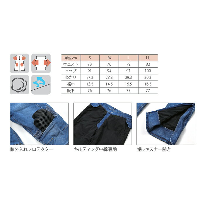 ・防風 ・中綿キルティング裏地を採用 ・ストレッチライトオンスデニムを使用 ・膝プロテクターは便利な外入れ ・腰・膝にオリジナルプロテクターを標準装備 ・スタイルアップなシルエット ・膝プロテクター位置はベルクロで一段階調整可能 カラー:INDIGO・LIGHT INDIGO・BEIGE・BLACK・CAMO サイズ:S・M・L・LL 表地:ストレッチデニム 裏地:ポリエステルタフタ 中綿:ポリエステル ・JAN INDIGO 4580412715564 4580412715571 4580412715588 4580412715595 LIGHT INDIGO 4580412715601 4580412715618 4580412715625 4580412715632 BEIGE 4580412715649 4580412715656 4580412715663 4580412715670 BLACK 4580412715687 4580412715694 4580412715700 4580412715717 CAMO 4580412715724 4580412715731 4580412715748 4580412715755 ■ ロッソスタイルラボ パンツ! ■ レディース パンツ!