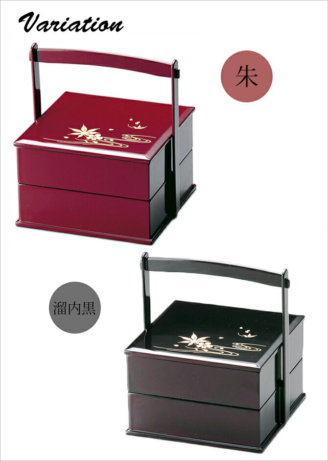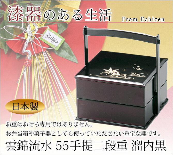 ギフト対応 商品名:雲錦流水 55手提二段重 溜内黒 1014810 旬なキーワード:重箱 お重 2段 取っ手 四角 おせち 木製 日本製 越前漆器 うるし 艶 上品 定番 漆器 高級 正月 弁当 菓子器