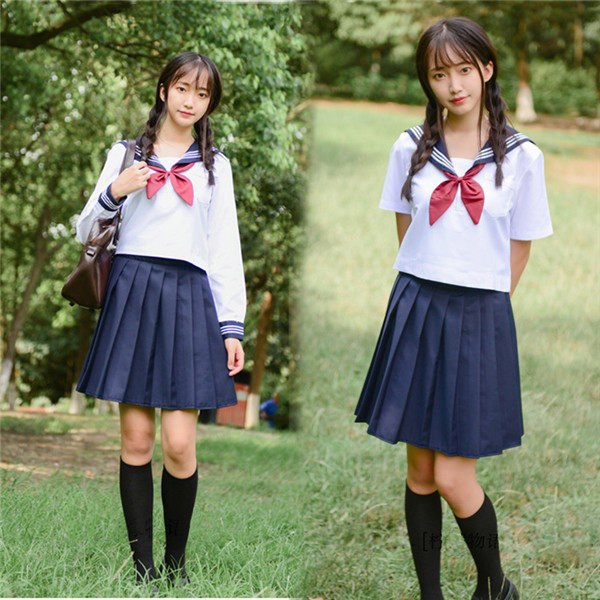 【サイズ有S/M/L/XL/2XL】セーラー服 半袖 学生服 コスチューム 半袖 長袖 JK制服 紺襟 ブラウス 女子高生 制服 上下セット 4点セット ミニスカート ホワイトシャツ コスプレ衣装 衣装 カーディガン追加可dd003c0/代引き不可