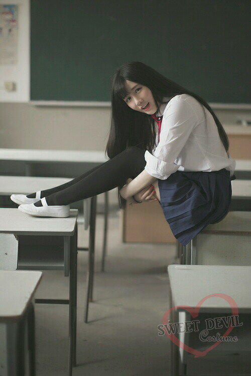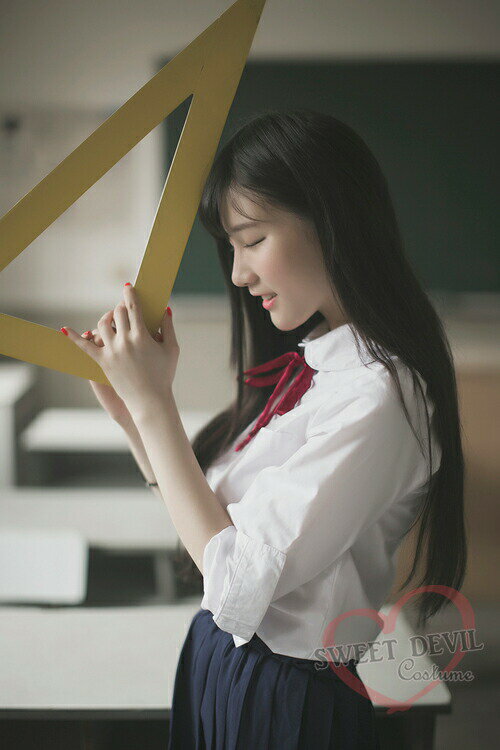 【赤リボンカジュアルセーラーセット】 赤の細いリボンの制服です。